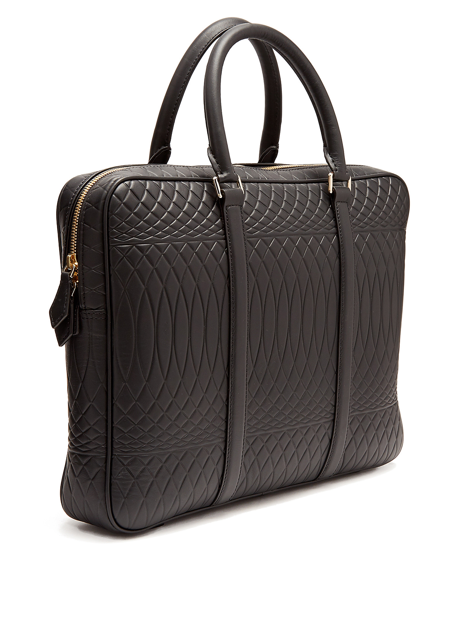 Maintain a sharp appearance with Dunhill’s black grained-leather Boston tote – an ideal choice for both work and off duty. It’s crafted in Italy to a capacious silhouette with two sturdy smooth-leather top handles, and secures with a push-stud fastening strap along the top. Leather trims at the base enhance durability, while the three internal pockets are ideal for small valuables.