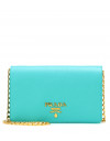 Das Mailänder Luxuslabel Prada ist weltweit für seine hochqualitativen Leder-Accessoires berühmt. Die kleine Galleria Lux Schultertasche in Türkis besteht aus dem beständigem Saffiano-Leder, das einst von Mario Prada erfunden wurde. Die Portemonnaie-typische Innenaufteilung mit acht Kartenschlitzen, Spiegel und Reißverschlussfach sowie der Logoschriftzug und die abnehmbare Schulterkette in Gold runden das Design stilecht ab.