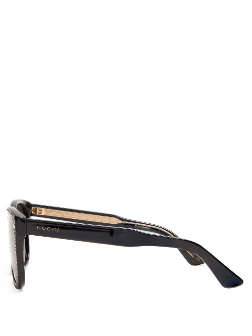 Speckled with gold and charcoal-grey glitter, Gucci's black acetate sunglasses have a typically avant-garde feel. They're crafted to a classic square-framed shape with polished gold-tone metal accents, and are complete with charcoal-grey tinted lenses.