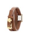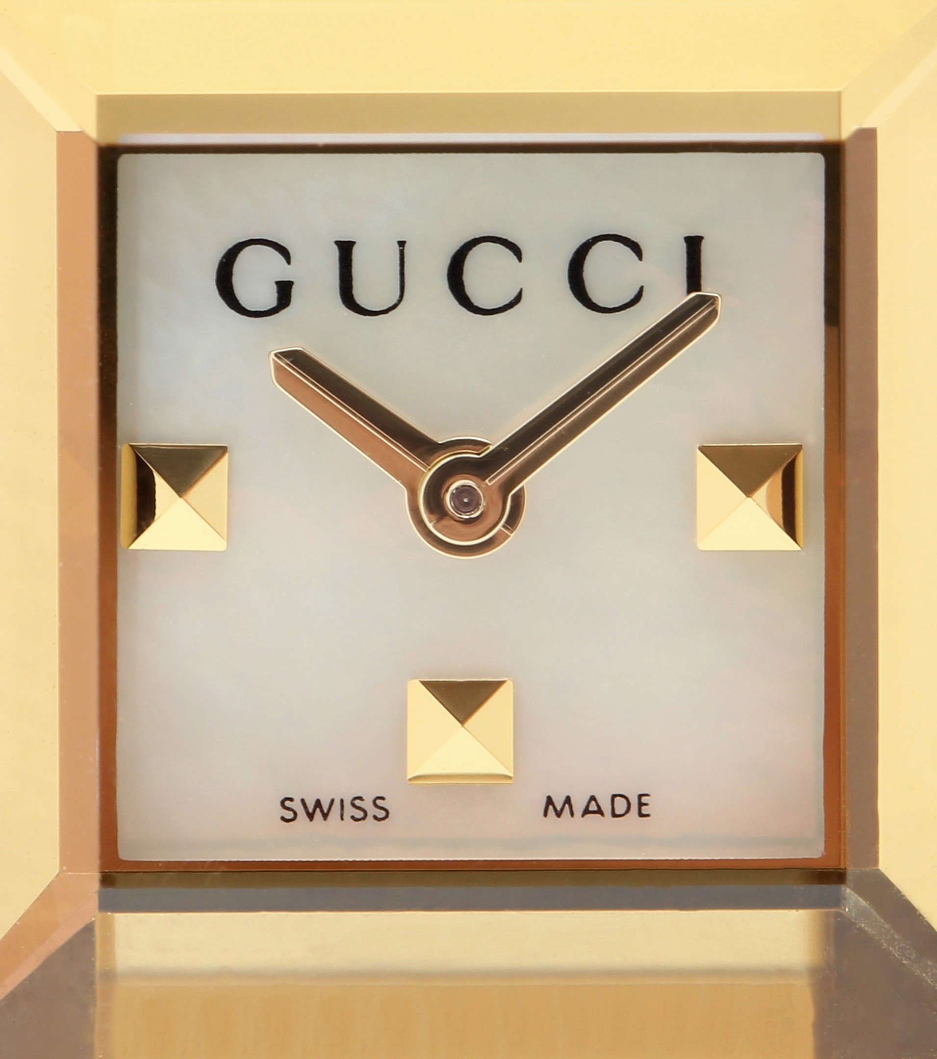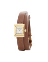 Die kleine, eckige G-Frame Uhr des italienischen Luxuslabels Gucci ist mit ihrem Perlmutt-Zifferblatt und dem vergoldeten Gehäuse ein wahrer Blickfang. Eine kleine Biene und der Gucci-Schriftzug akzentuieren das edle Accessoire. Abgerundet wird das Design von dem braunen Armband aus feinstem Glattleder, das doppelt um Ihr Handgelenk geschlungen wird.